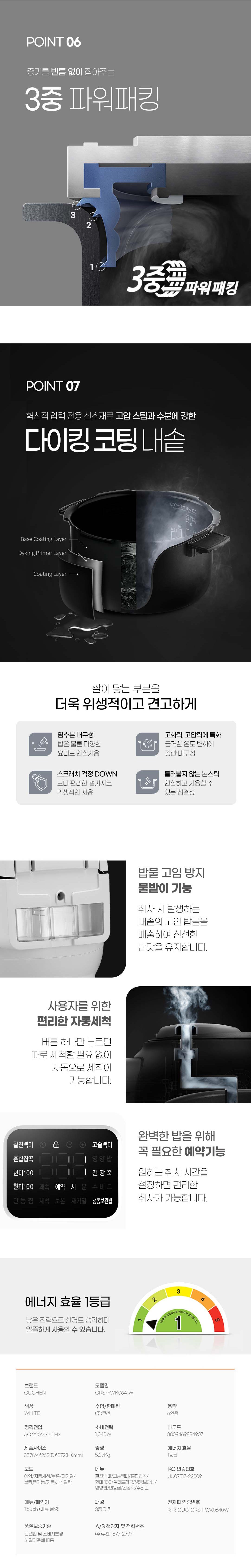 Cuchen The Fit 6 хүний багтаамжтай, гэр бүл, найз нөхөдтэйгээ хооллож болохуйц их багтаамжтай, найдвартай цахилгаан будаа агшаагч юм. Өндөр чанарын Кучен (Cuchen) брэндийн техник технологиор бүтээгдсэн тул будааг жигд, амттай агшаадаг.